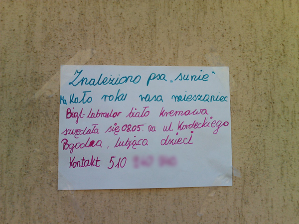 Ostatnio częściej spacerujemy po "naszej" dzielnicy. Zauważyliśmy, że częstą metodą komunikacji jest tutaj karteczka. Ogłoszenia, prośby, podziękowania, ostrzeżenia zapisane na zwykłym kawałku papieru, można znaleźć w różnych dziwnych miejscach. Te, które najbardziej nas zainteresowały, zdziwiły, rozśmieszyły lub rozczuliły prezentujemy tutaj.